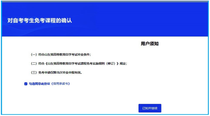 本次自学考试课程免考仅限2025年下半年自学考试毕业申请使用。在毕业申请审核时,将按照山东省自学考试专业开考文件等政策规定,对课程免考是否符合毕业条件进行再次审定。请广大考生在提交课程免考申请前认真阅读本须知,了解《自学考试课程免考网上申请常见问题说明》内容,按规定流程进行网上申请操作。免考申请过程中遇到问题,可电话咨询省、市教育招生考试机构。